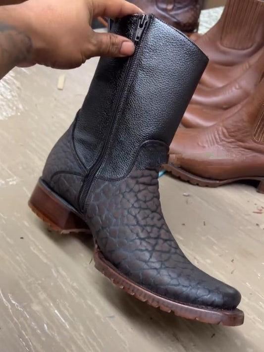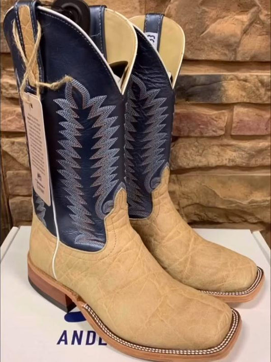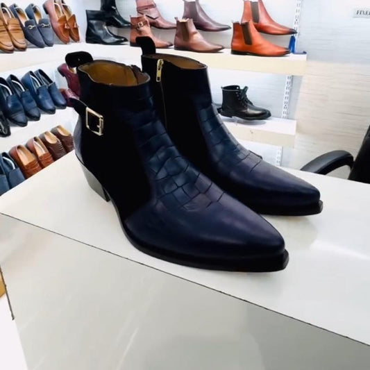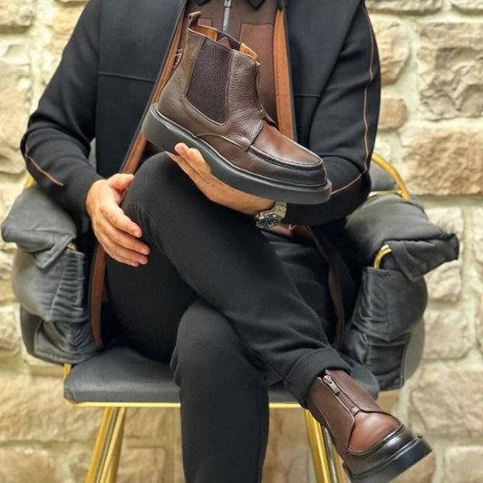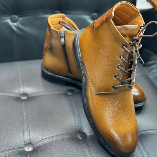 Men's Brown Western Cowboy Boots With Embroidered Detailing & Metal Eyelets