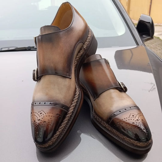 Men's Retro Faux Buckle And Fringe Leather Loafers