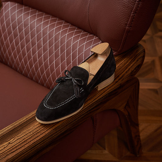 Men’s Black Genuine Leather Formal Tassel Loafers Dress Shoes