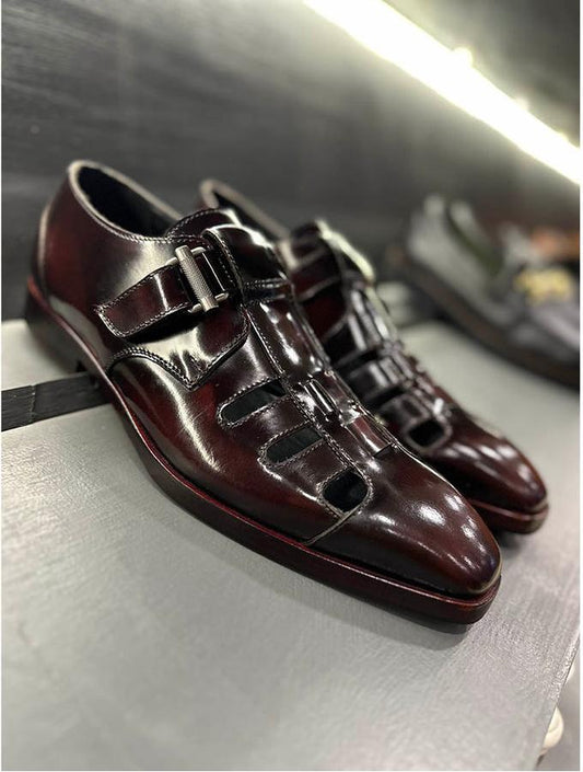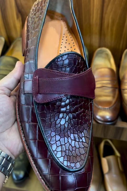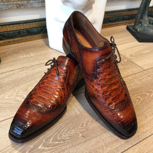Brown Crocodile Leather Side Lace-Up Oxfords