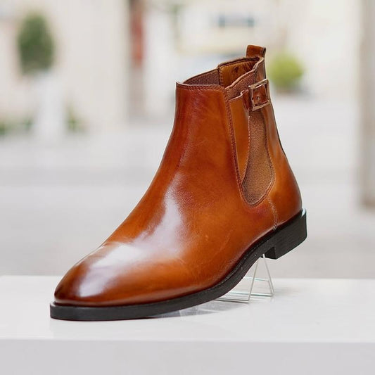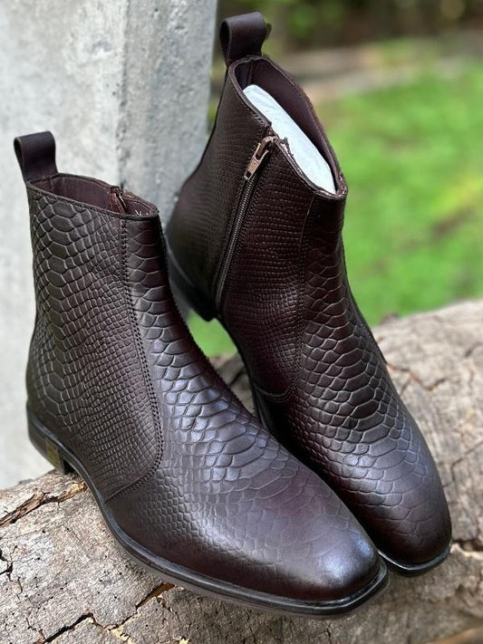 Brown Corodile And Snake Print Leather Chelsea Boots