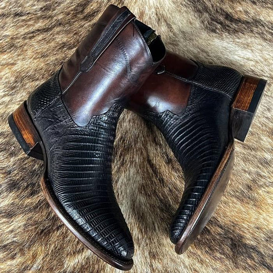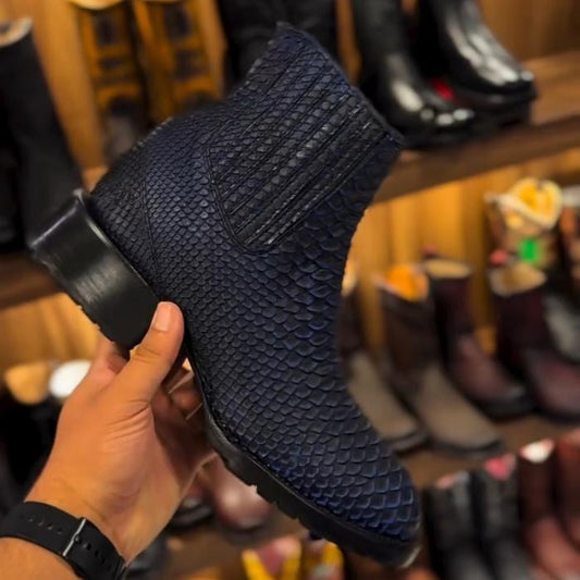 Genuine Leather Chelsea In Corodile And Snake Pattern Boots