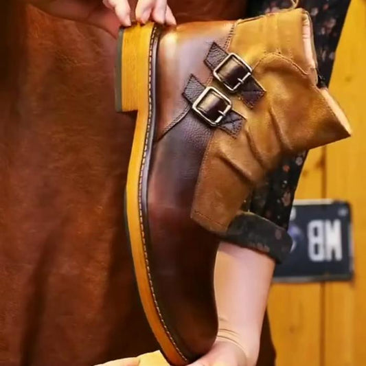 Solid Color Handmade Cowhide Ankle Boots