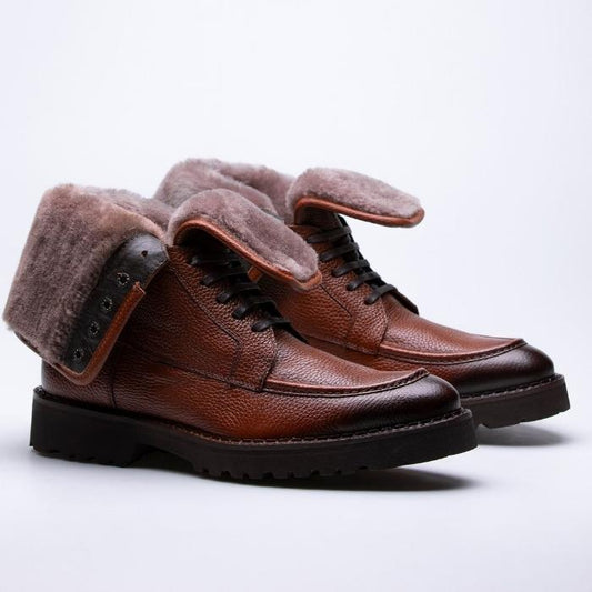 Men's Leather Boots With Shearling Details
