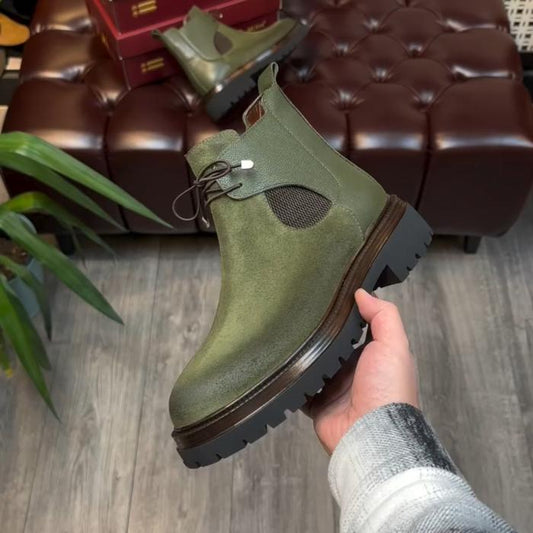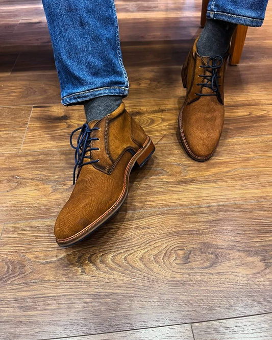 Elegant Suede Lace-Up Leather Boots