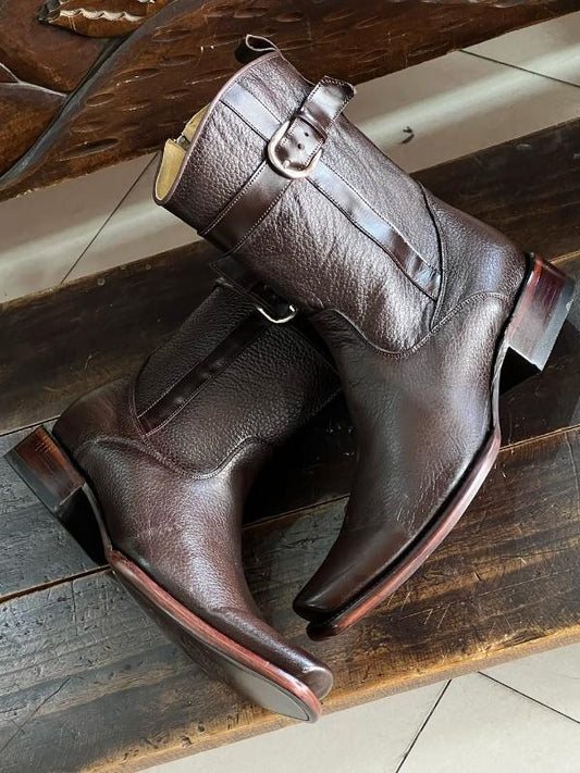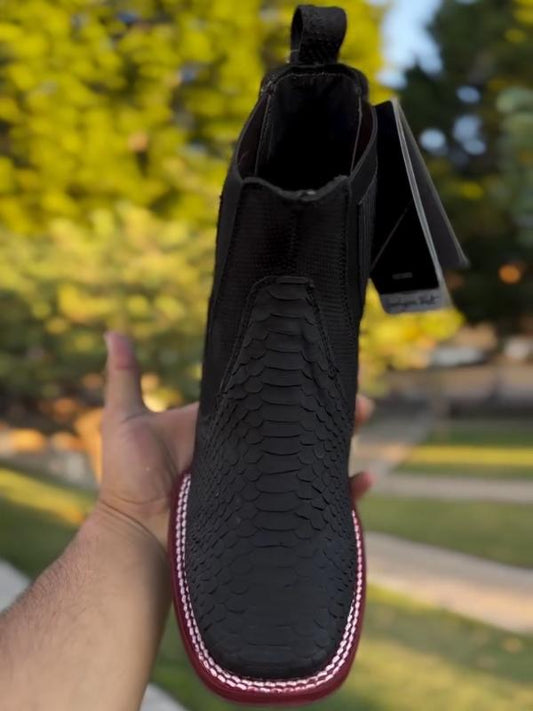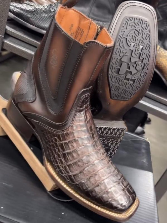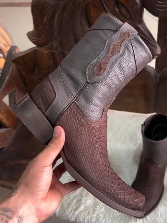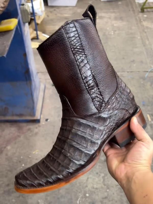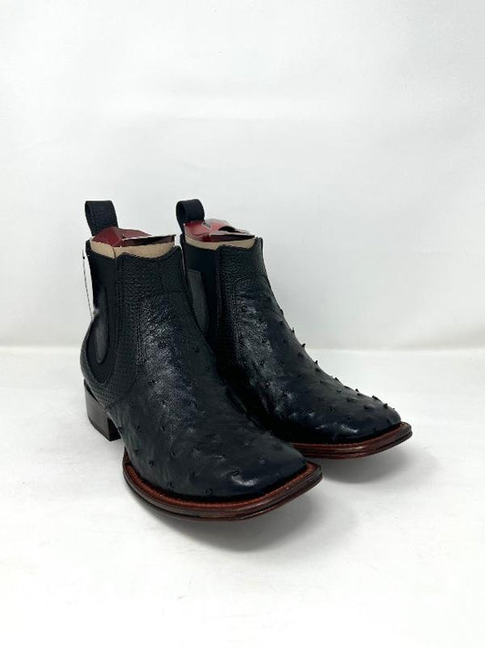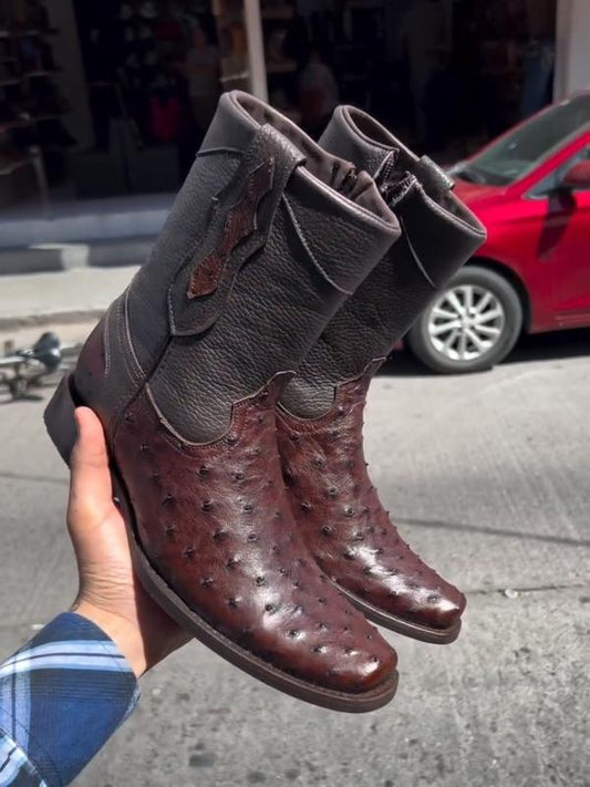 Men’s Wide Square Toe Ostrich Ankle Boot