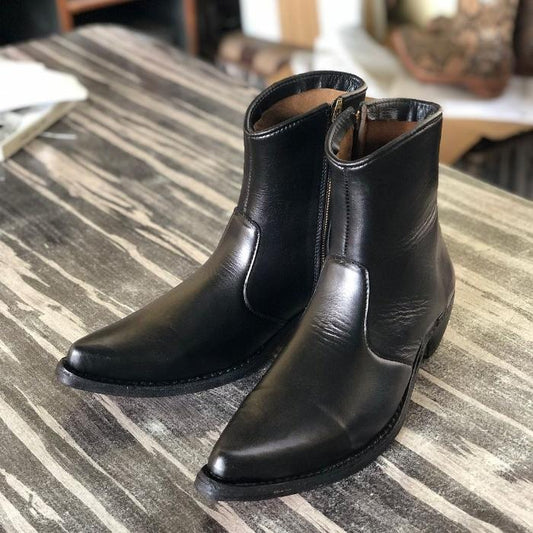 Handmade Leather Ankle Zipper Boots