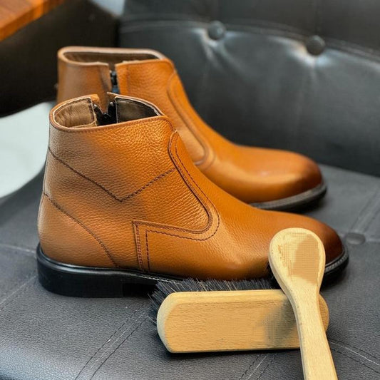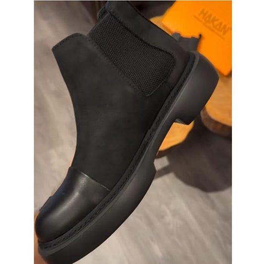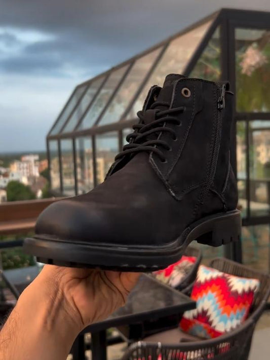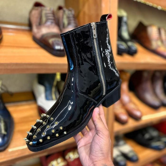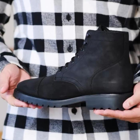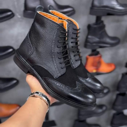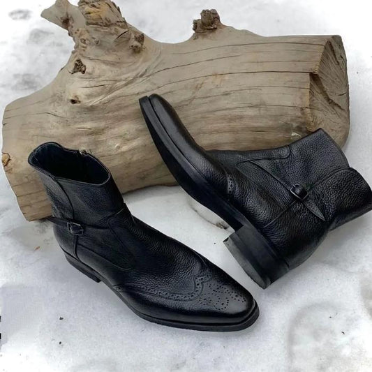 Unique Handmade Black Wingtip Brogue Leather Dress Boots