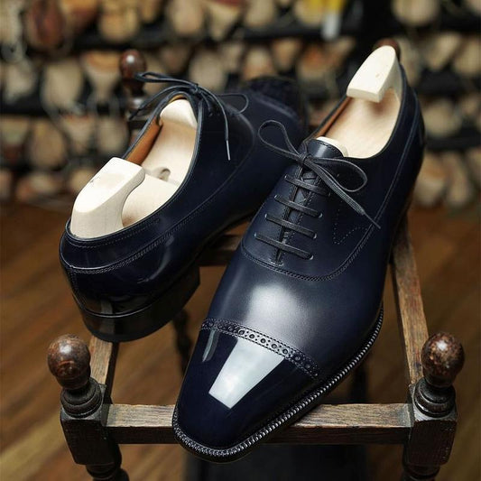 Mens Stylish Casual Blue Wingtip Oxford Shoes