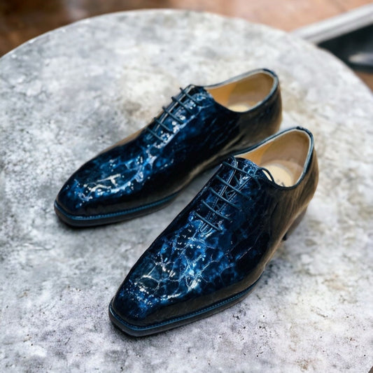 Brown Crocodile Leather Side Lace-Up Oxfords