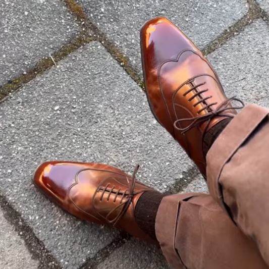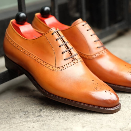 Elegant Men's Brown Leather Wing Tip Lace Up Brogue Shoes