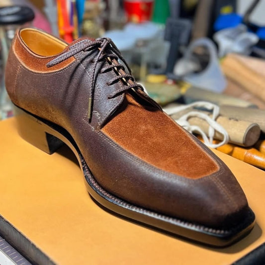 Patchwork Suede Lace-Up Hunt Derby Shoes