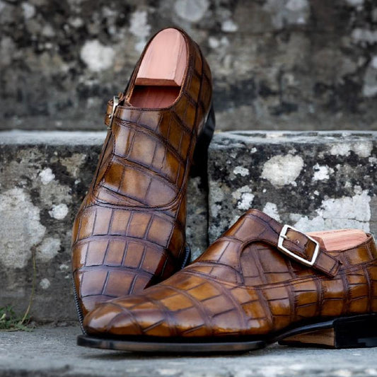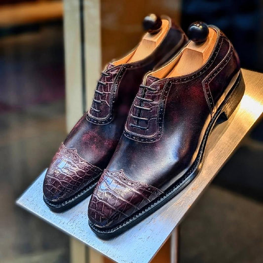 Men's Shoes Crocodile Pattern Leather Work Shoes